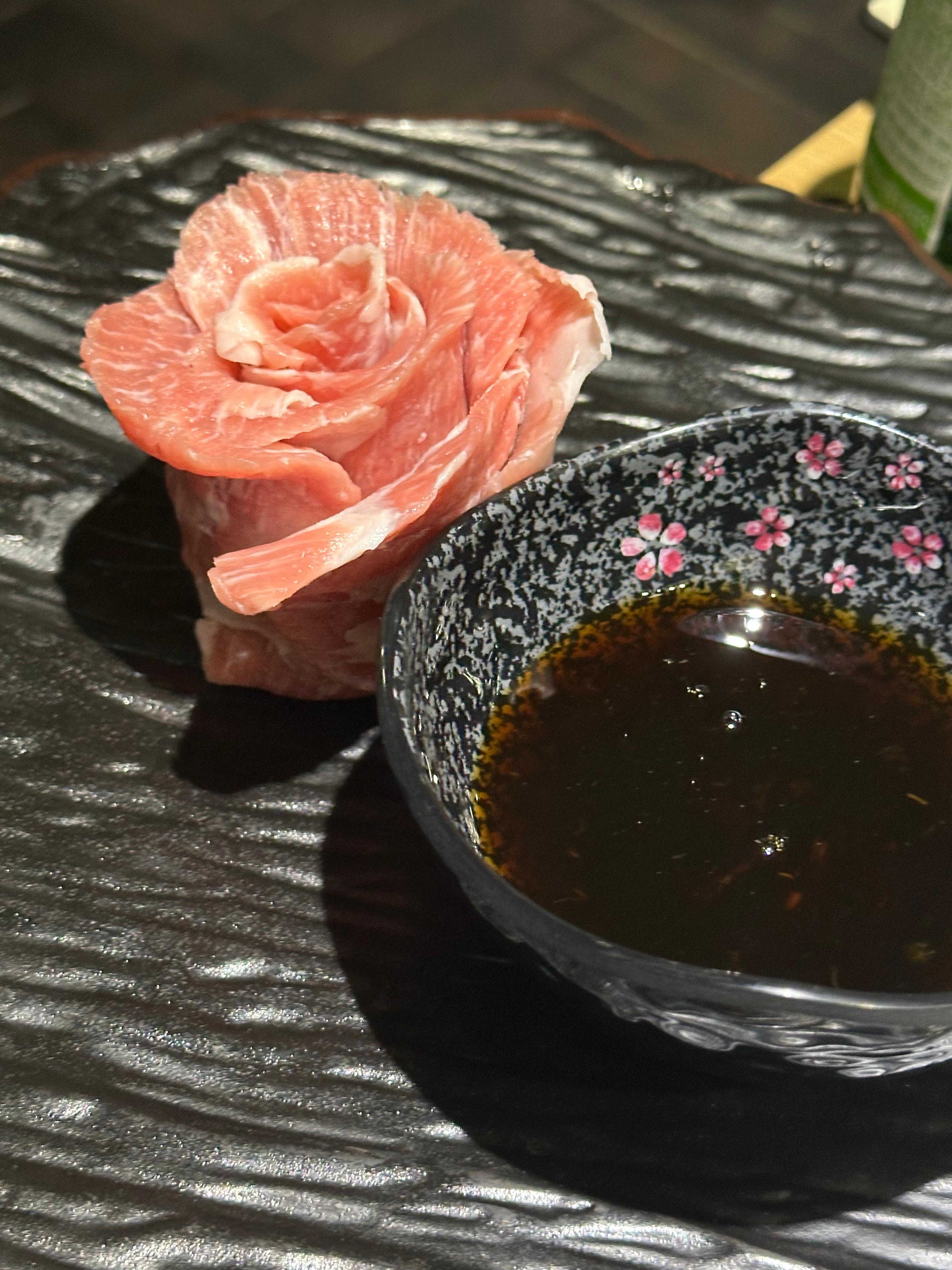 고기를 기다리는 동안 에피타이저로 일본식 계란찜이 나왔어요. 처음 한 입 먹었을 때 부드러움에 깜짝! 위에는 가쓰오부시 소스가 뿌려져 있어서 감칠맛이 제대로였어요.