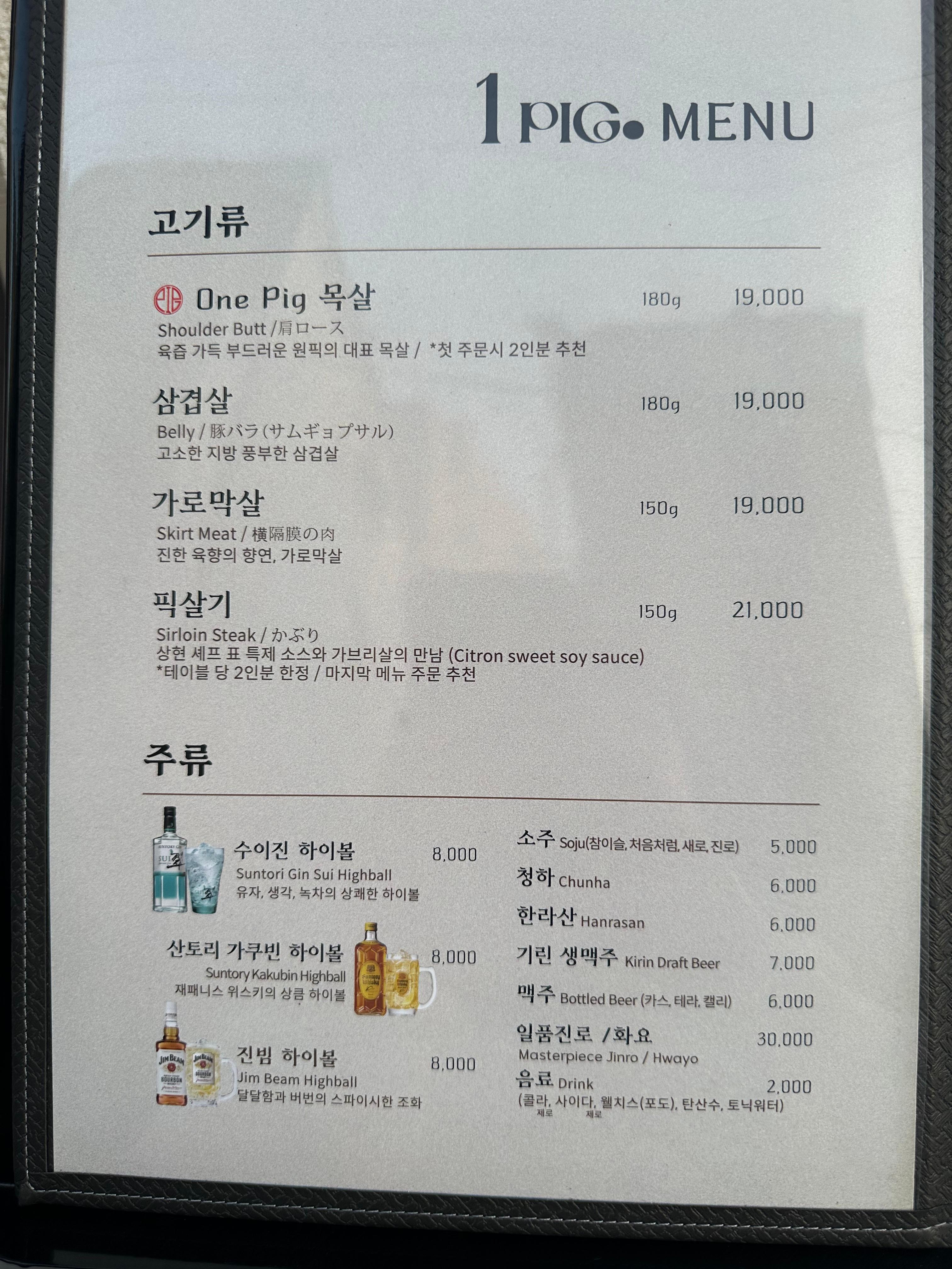 목살은 원픽 익선점의 대표 메뉴!
